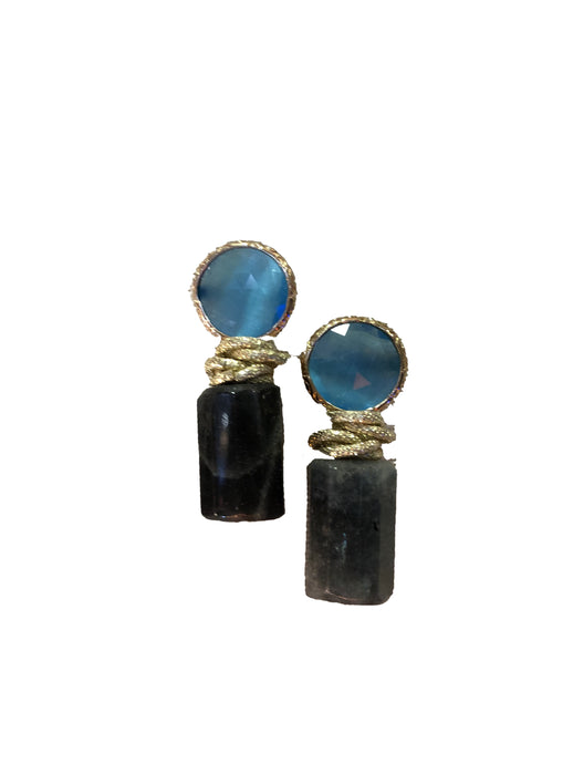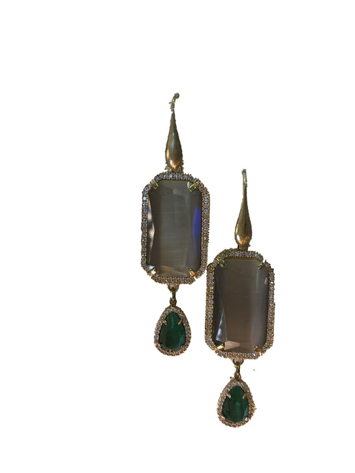 Orecchini in ottone, cristallo e pietre in bigiotteria